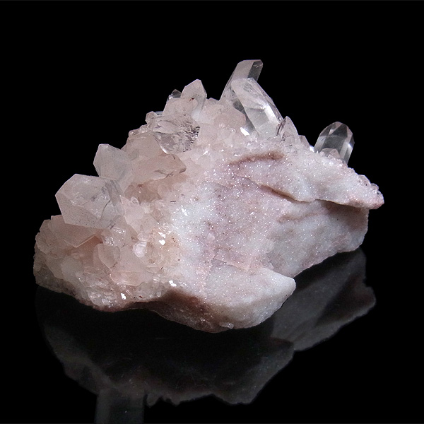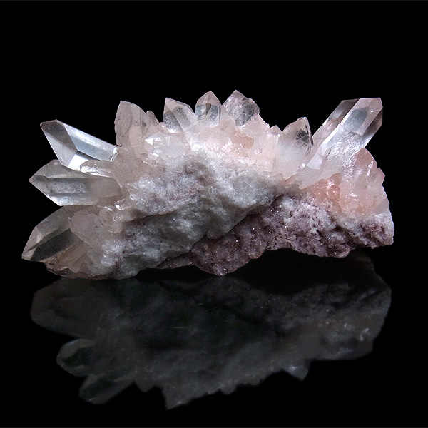 ピンク色の水晶といえばローズクォーツが有名ですが、それとは別で土壌に含まれる赤褐色をした酸化鉄により表面や母岩部がピンク色になっています。