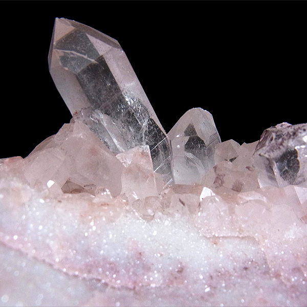 この地で採掘される水晶には表面がピンク色をしたものがよく見られます。