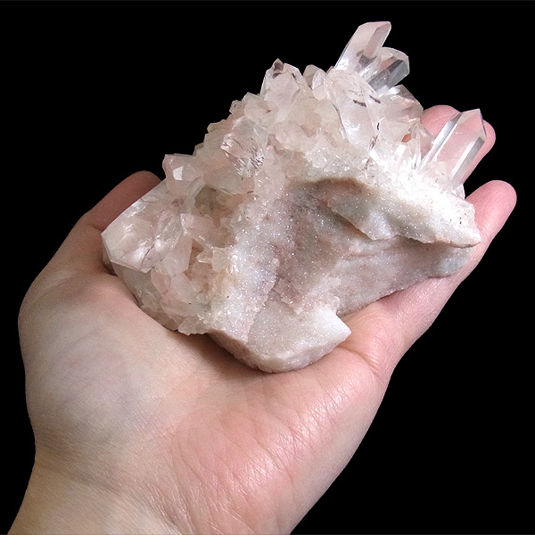 パールバティー渓谷産の水晶クラスターです。 美しい透明感の中にほのかに淡いピンク色があるのが魅力的な水晶です。