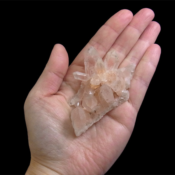 パールバティー渓谷産の水晶クラスターです。 美しい透明感の中にほのかに淡いピンク色があるのが魅力的な水晶です。