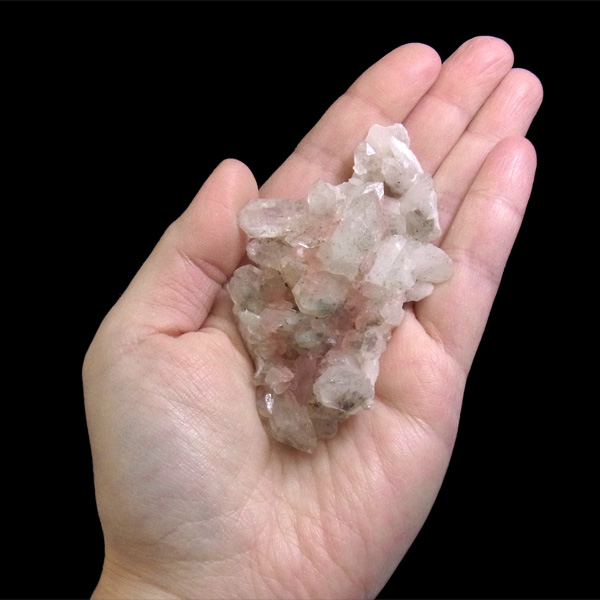 パールバティー渓谷産の水晶クラスターです。 美しい透明感の中にほのかに淡いピンク色があるのが魅力的な水晶です。