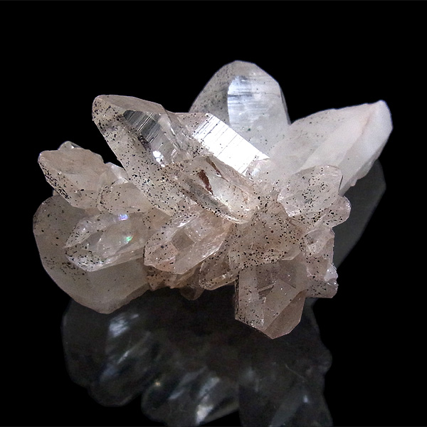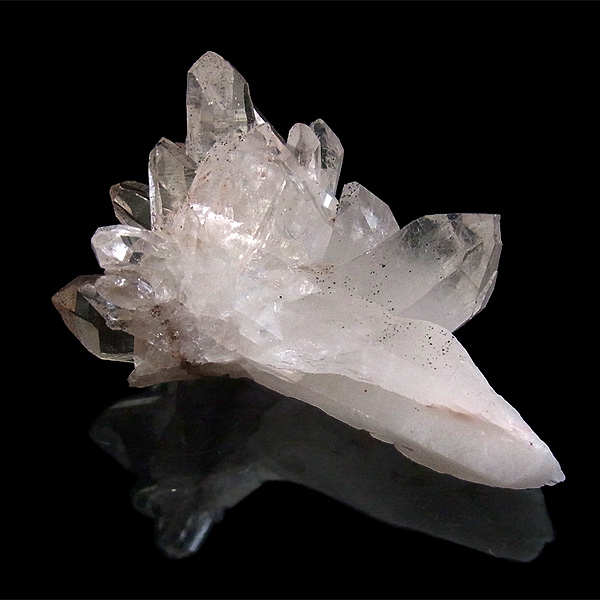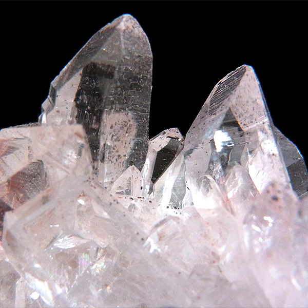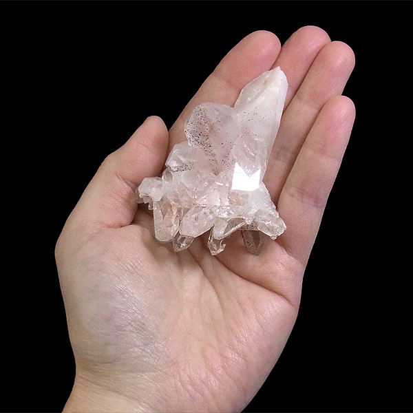 パールバティー渓谷産の水晶クラスターです。 美しい透明感の中にほのかに淡いピンク色があるのが魅力的な水晶です。この地で採掘される水晶には表面がピンク色をしたものがよく見られます。