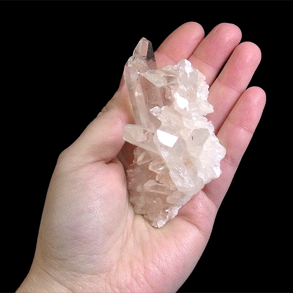 パールバティー渓谷産の水晶クラスターです。 美しい透明感の中にほのかに淡いピンク色があるのが魅力的な水晶です。