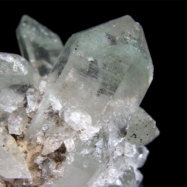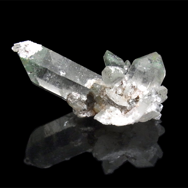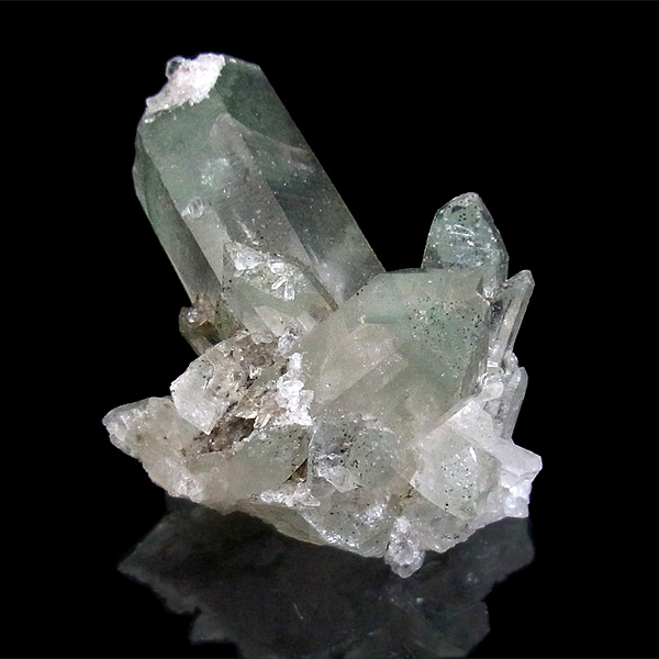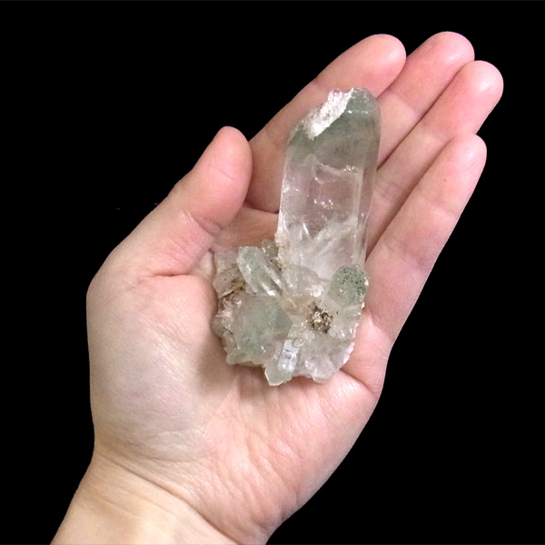 インドのヒマラヤ産のグリーンファントム水晶クラスターです。クローライト(緑泥岩)が含まれており、美しいファントムを形成しています。他ではなかなか手に入らない、希少な一品です。