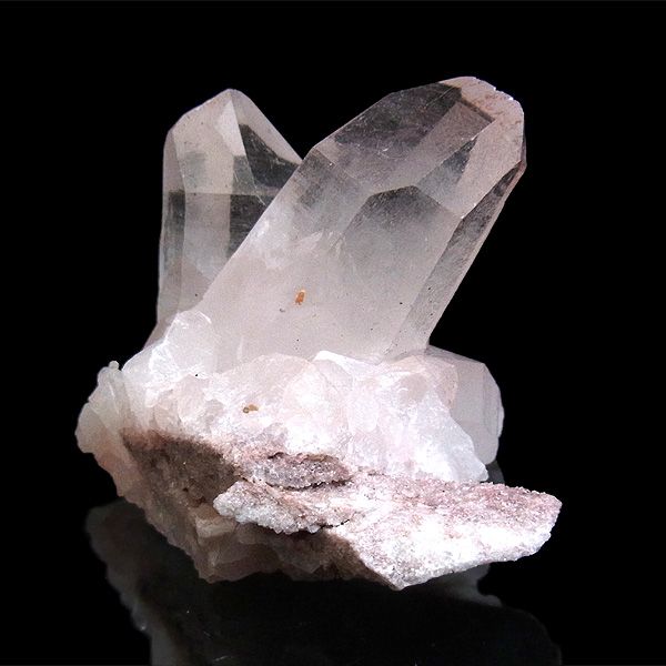 ピンク色の水晶といえばローズクォーツが有名ですが、それとは別で土壌に含まれる赤褐色をした酸化鉄により表面や母岩部がピンク色になっています。