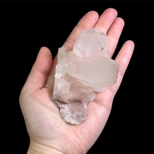パールバティー渓谷産の水晶クラスターです。 美しい透明感の中にほのかに淡いピンク色があるのが魅力的な水晶です。
