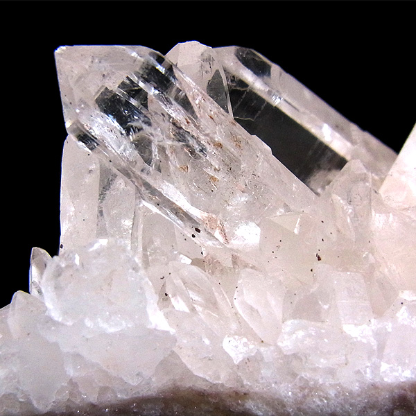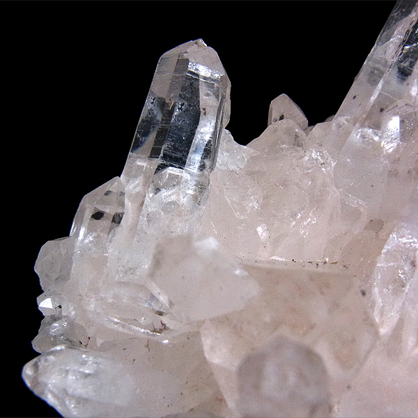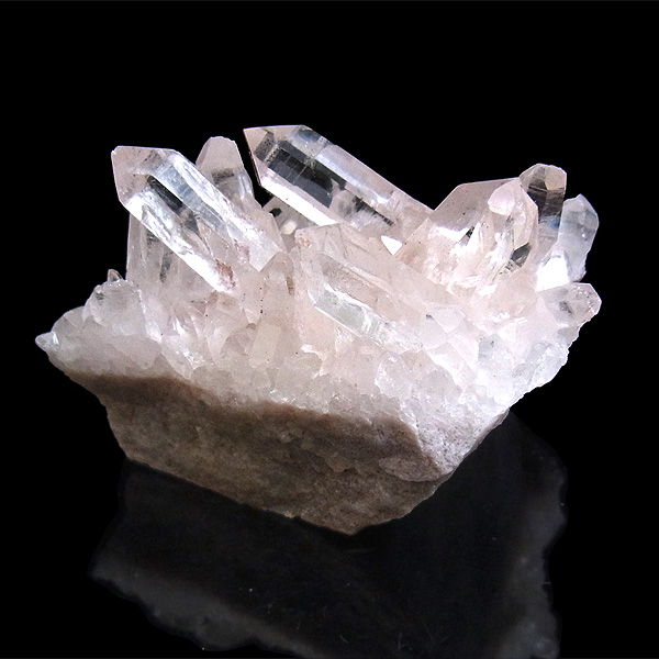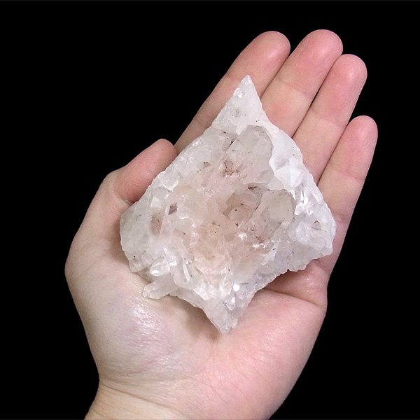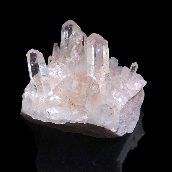パールバティー渓谷産の水晶クラスターです。 美しい透明感の中にほのかに淡いピンク色があるのが魅力的な水晶です。この地で採掘される水晶には表面がピンク色をしたものがよく見られます。