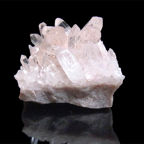 ピンク色の水晶といえばローズクォーツが有名ですが、それとは別で土壌に含まれる赤褐色をした酸化鉄により表面や母岩部がピンク色になっています。