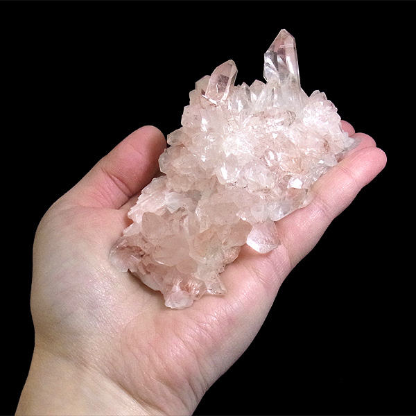 パールバティー渓谷産の水晶クラスターです。 美しい透明感の中にほのかに淡いピンク色があるのが魅力的な水晶です。