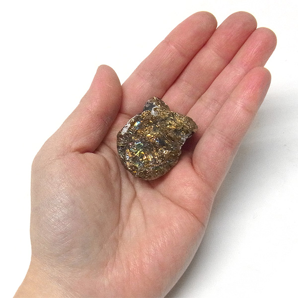 このエクアドルで新たに見つかったナチュラルビスマスは、元はアンモナイトが化石化し、パイライトに置換したものがベースとなっている希少なもの。