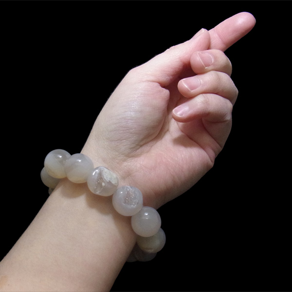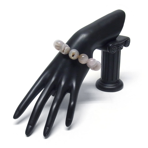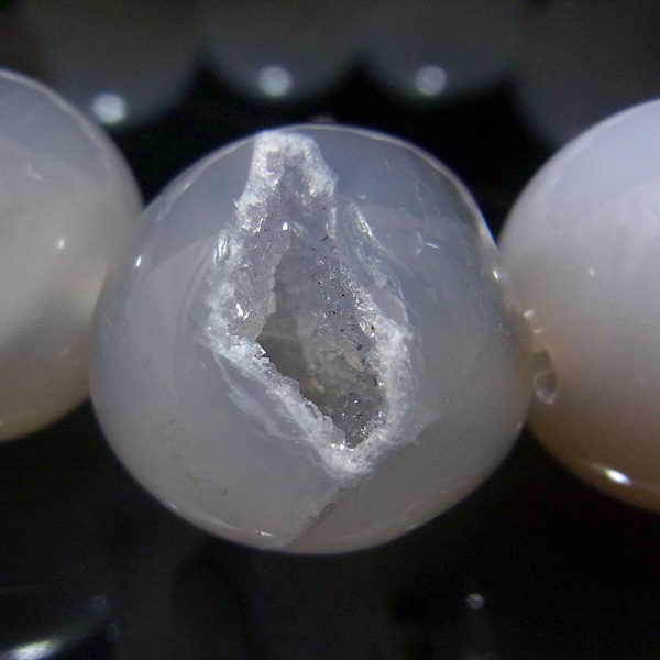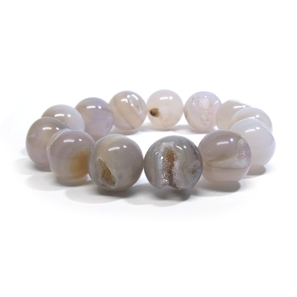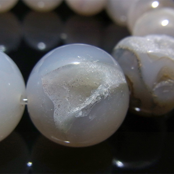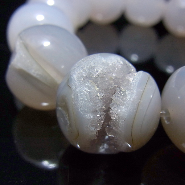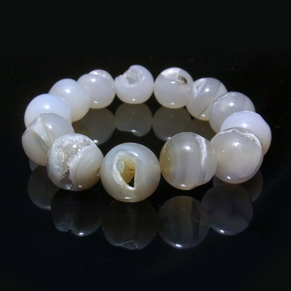 非常に珍しいトレジャーメノウ(ドゥルージー)のブレスレットです。メノウの割れ目にキラキラの結晶化した水晶ドゥルージーが見られます。ほとんどのビーズがドゥルジー状になっている大変高品質なものです。