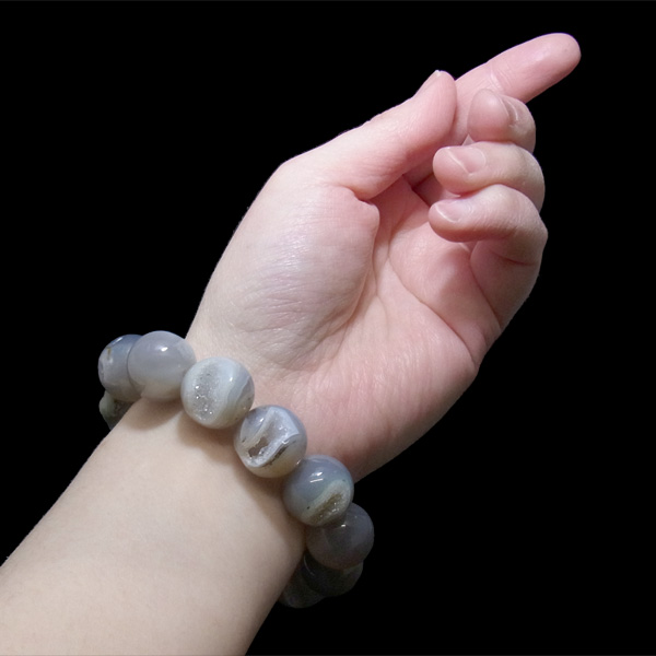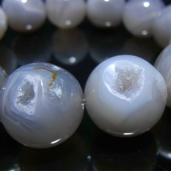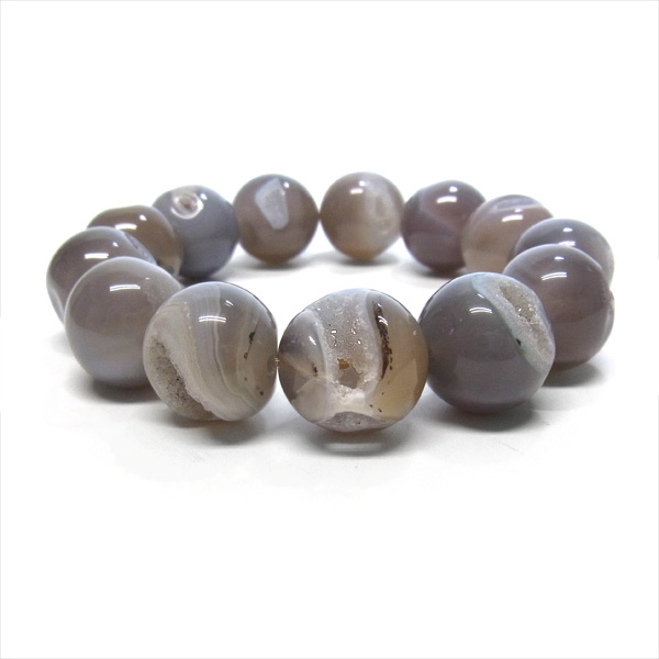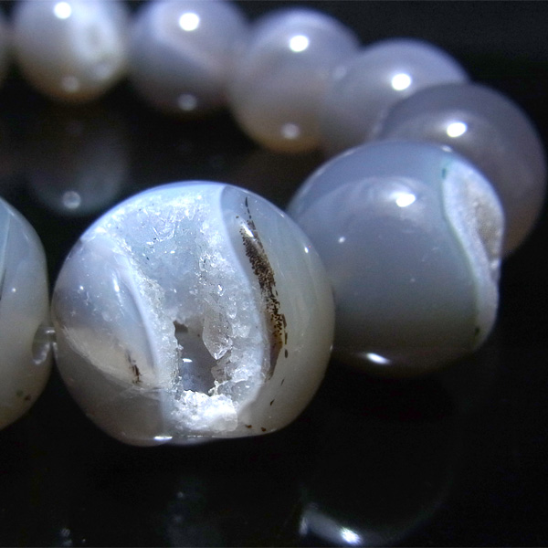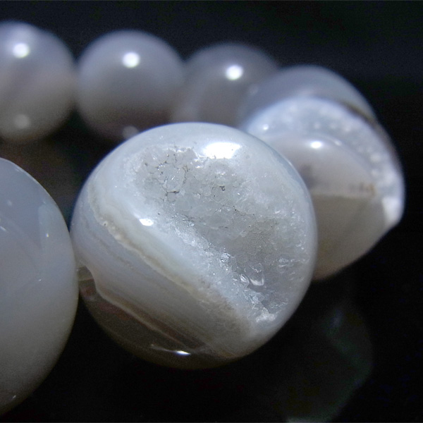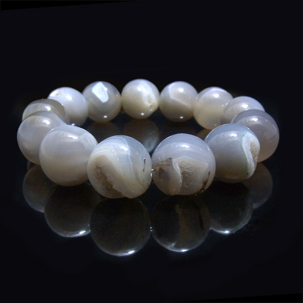非常に珍しいトレジャーメノウ(ドゥルージー)のブレスレットです。メノウの割れ目にキラキラの結晶化した水晶ドゥルージーが見られます。ほとんどのビーズがドゥルジー状になっている大変高品質なものです。