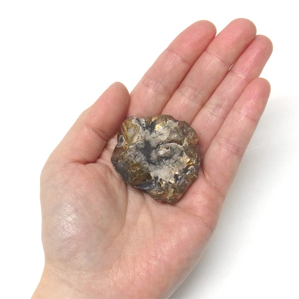 サリグラムとは、アンモナイトが黒く化石化したもの、またはそれを包み込んだ石のことです。