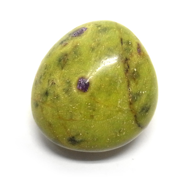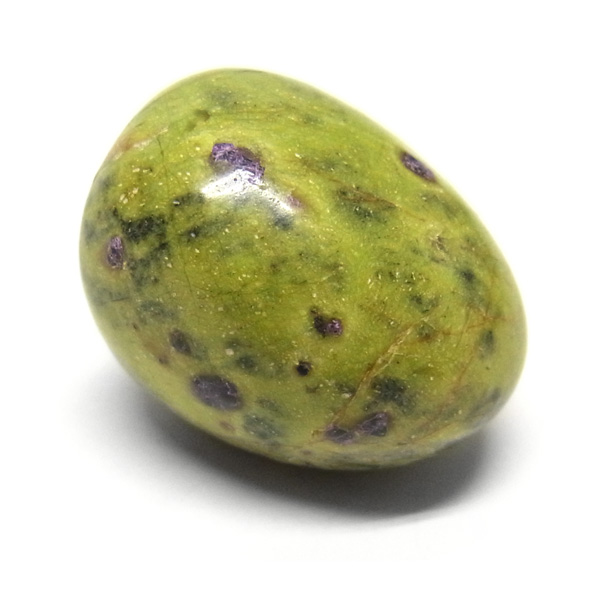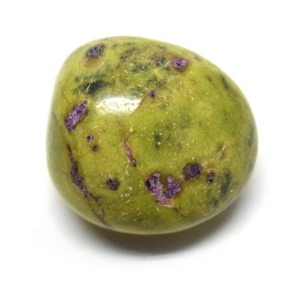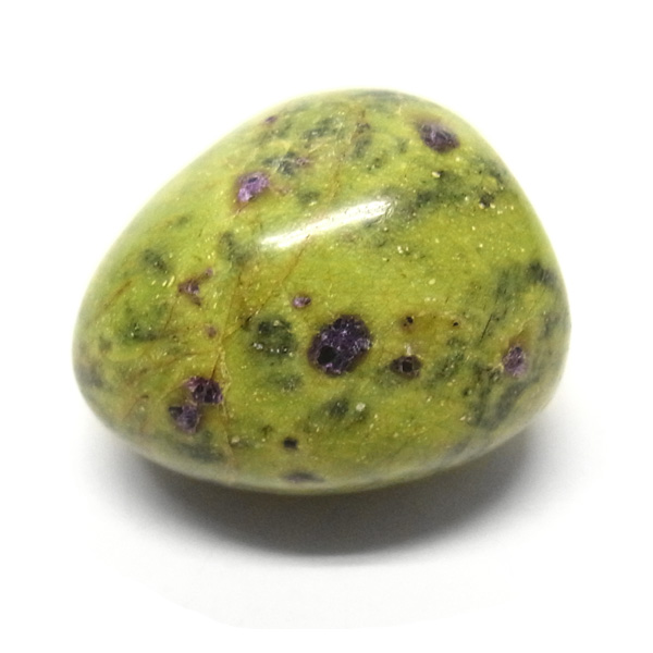 鮮やかな黄緑のサーペンティン(リザーダイド)に、またまた鮮やかな紫色のスティクタイトが点々と彩りを添え、鮮やかな色彩のハーモニーが印象的です。