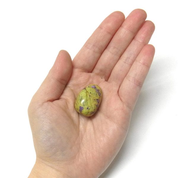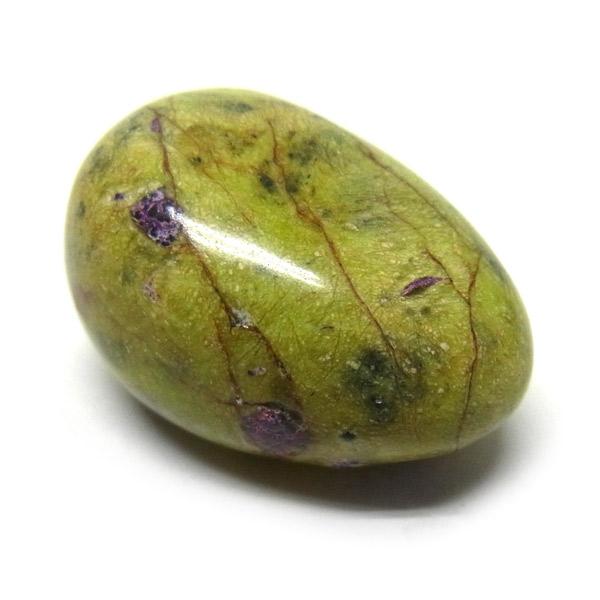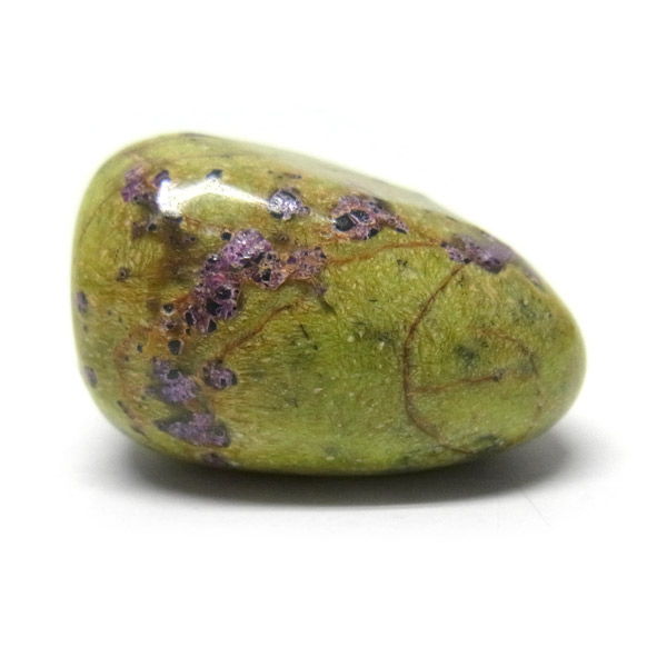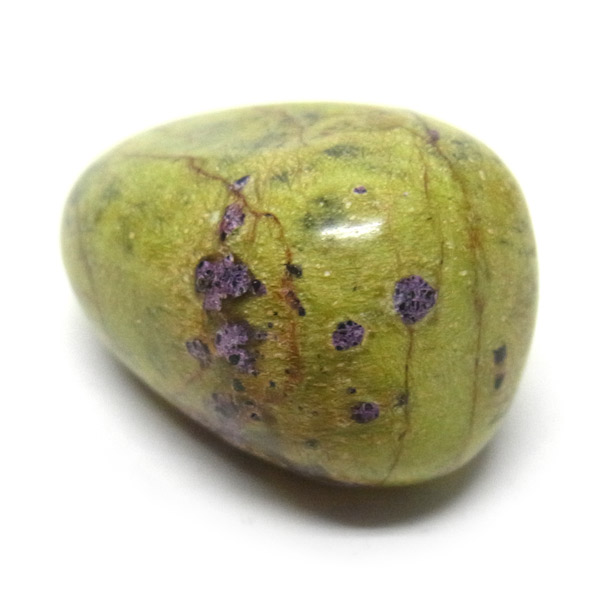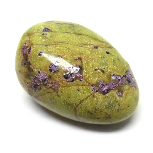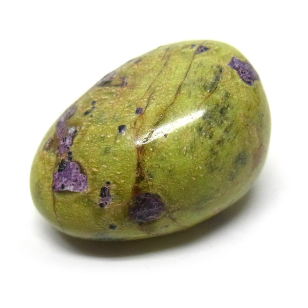 鮮やかな黄緑のサーペンティン(リザーダイド)に、またまた鮮やかな紫色のスティクタイトが点々と彩りを添え、鮮やかな色彩のハーモニーが印象的です。