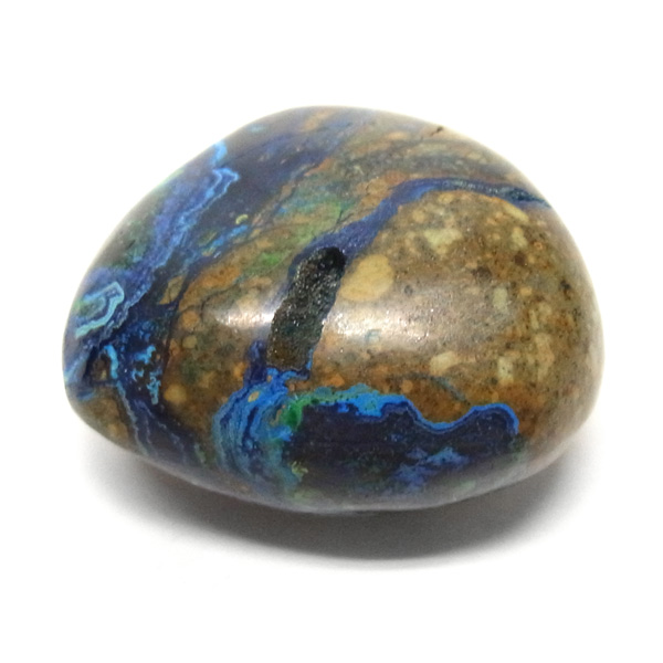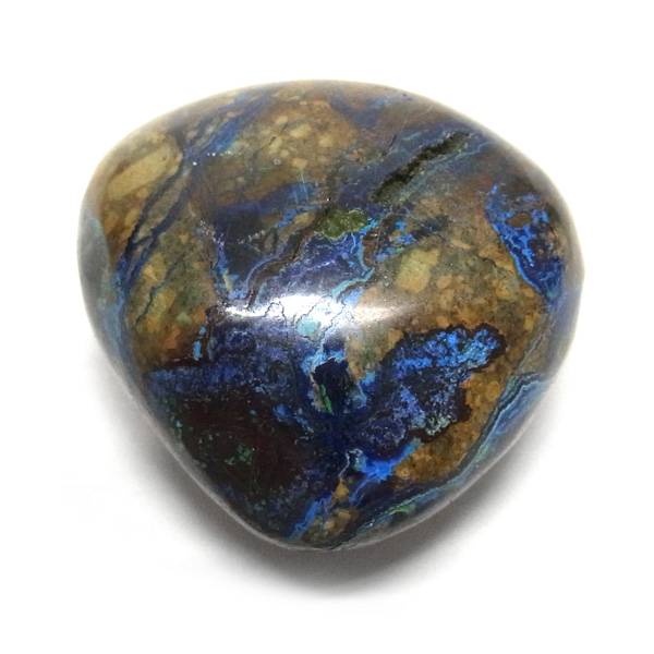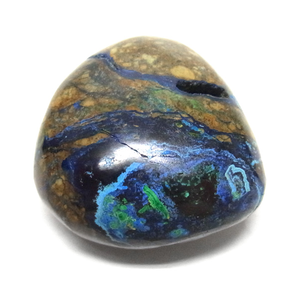 アズロマラカイトはアズライトとマラカイトの2種類の石が混合されてできたものです。強いパワーを持った石ですが、クセはなく、誰にでも親しみやすい石です。純真で可憐な心を守る、騎士の性格を持っていますので、女性やお子さまにも、たいへんおすすめの石です。呪いや嫉妬、恨みを退けて、邪悪なエネルギーから持ち主を守ります。特に邪悪なものが集いやすいといわれる夜には、心強い護符となってくれます。枕元に置いて眠ると、悪夢を取り除き、安らかで心地よい眠りをもたらしてくれるといわれています。瞑想にも最適の石です。