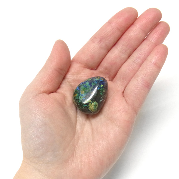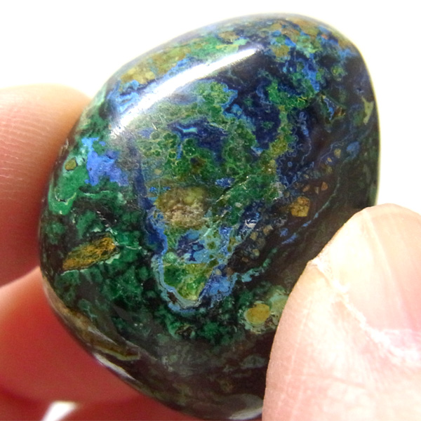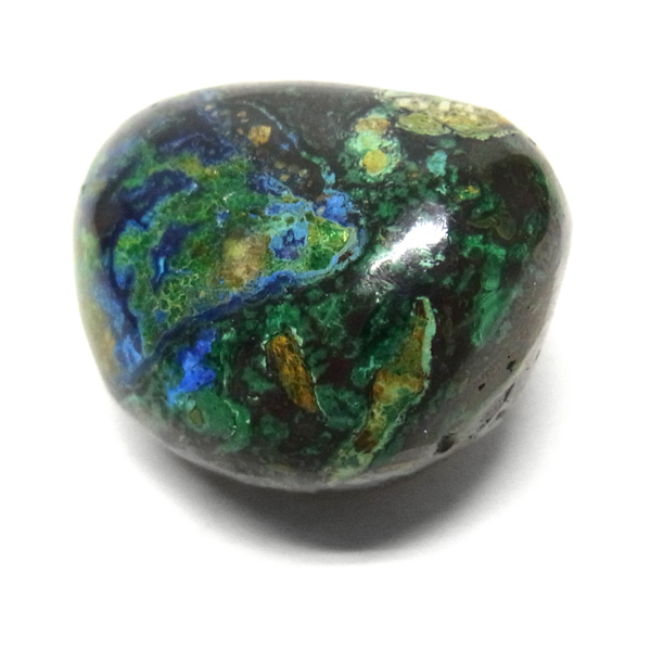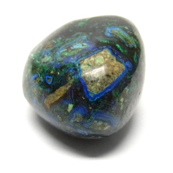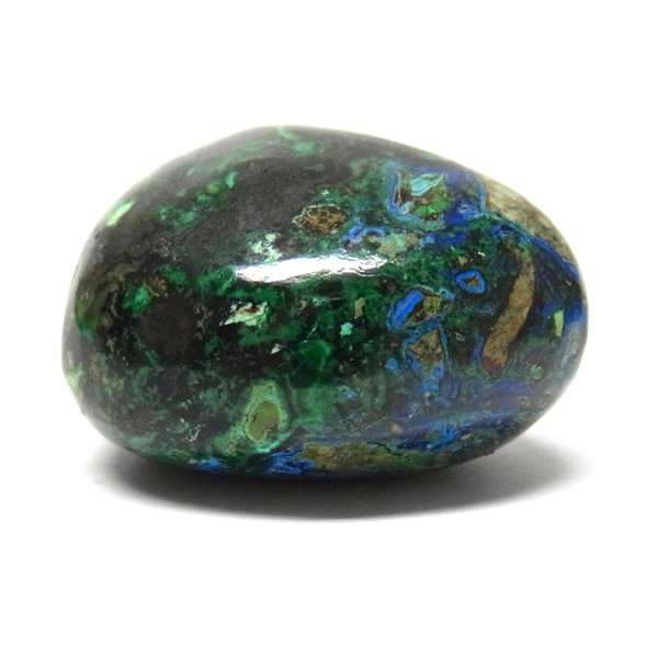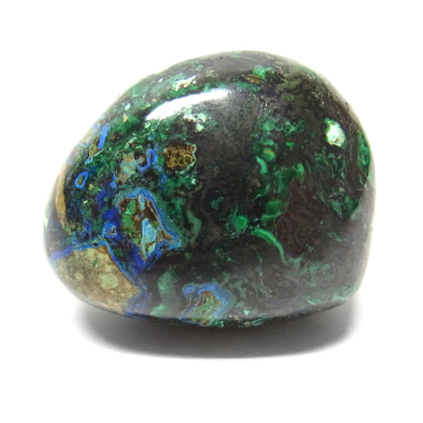 アズロマラカイトはアズライトとマラカイトの2種類の石が混合されてできたものです。強いパワーを持った石ですが、クセはなく、誰にでも親しみやすい石です。純真で可憐な心を守る、騎士の性格を持っていますので、女性やお子さまにも、たいへんおすすめの石です。呪いや嫉妬、恨みを退けて、邪悪なエネルギーから持ち主を守ります。特に邪悪なものが集いやすいといわれる夜には、心強い護符となってくれます。枕元に置いて眠ると、悪夢を取り除き、安らかで心地よい眠りをもたらしてくれるといわれています。瞑想にも最適の石です。
