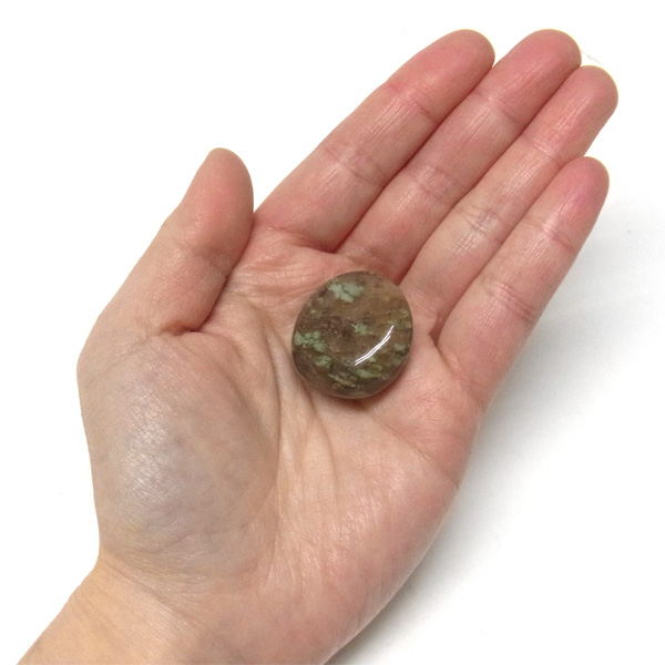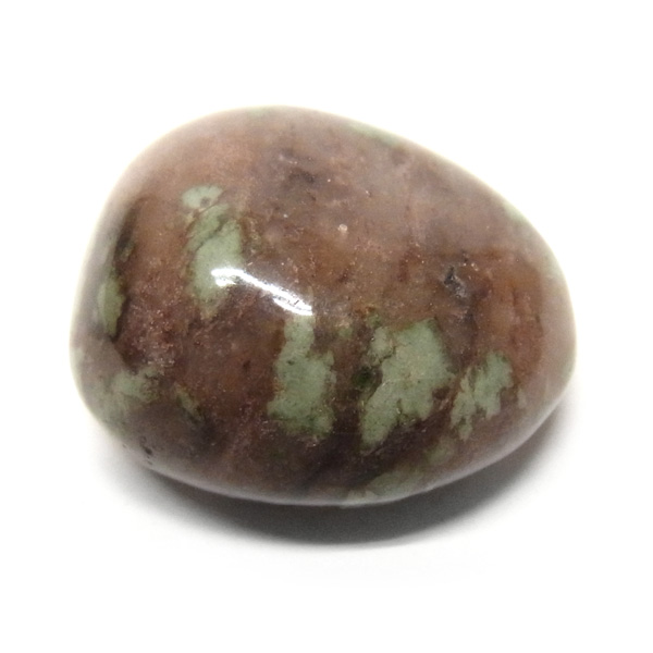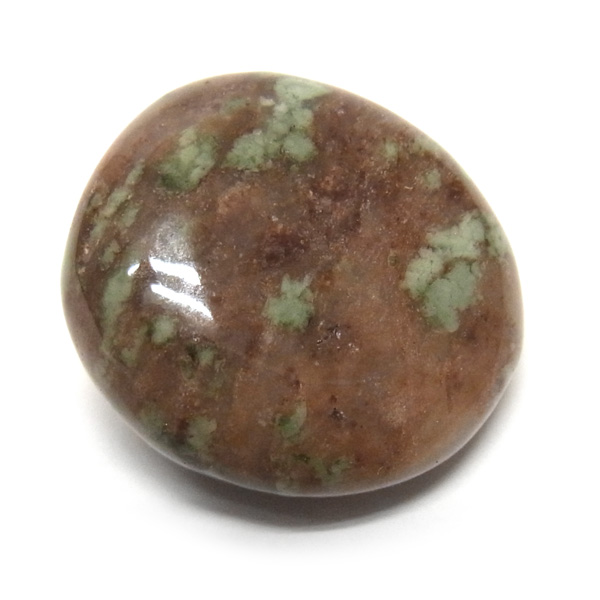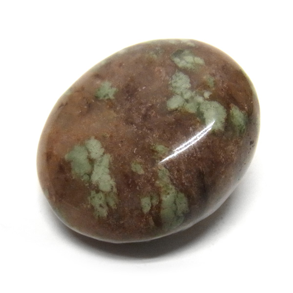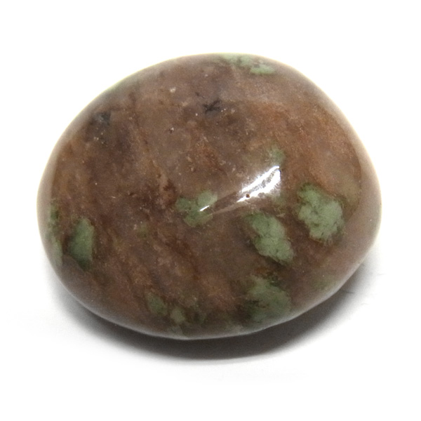 オーストラリア産のナンドライト、タンブルです。ナンドライトはオーストラリア・ニューサウスウェールズ州の小さな町ナンドルが産地である、希少であまり知られていない岩石です。ナンドライトという名前は、この産地に由来しています。ナンドライトの本質的な分類はエジリン閃長岩(エジリン・サイアナイト)にあたります。茶色やベージュ系のサイアナイト母岩の中に、深いグリーンのエジリンがドット状に散りばめられており、その独特な模様と色合いが非常に魅力的です。
