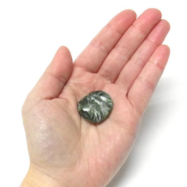 美しいグリーンを持つセラフィナイトのタンブルです。