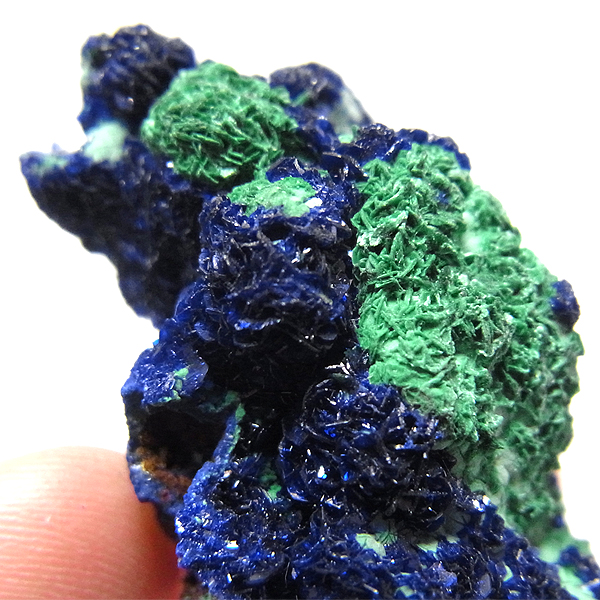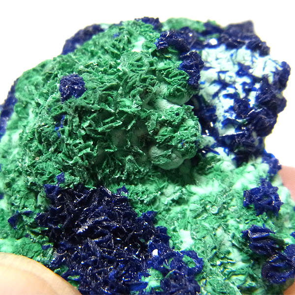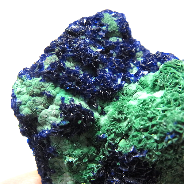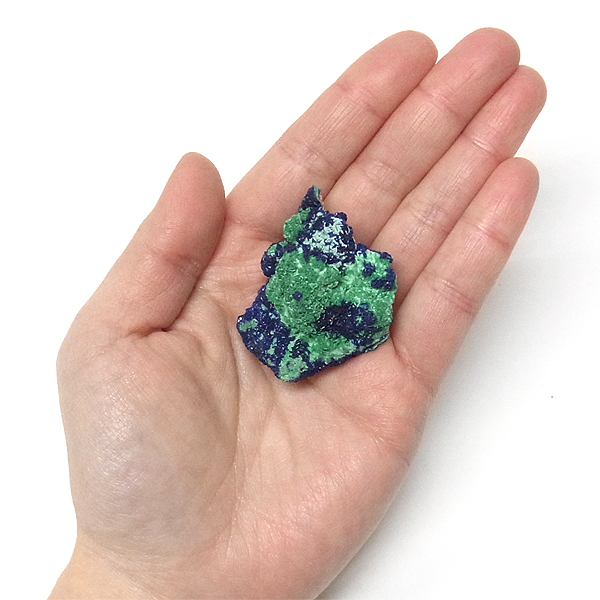 モロッコ産のアズロマラカイト原石です。高品質のアズライトのキラキラした結晶とマラカイトの艶やかな光沢が同時に楽しめます。アズライトの青色とマラカイトの緑色が混ざり合った芸術的な美しさを持っています。