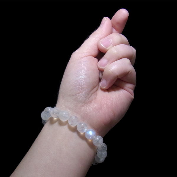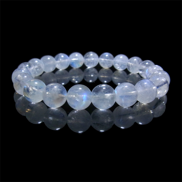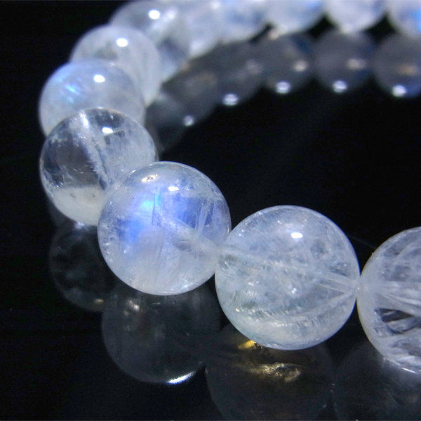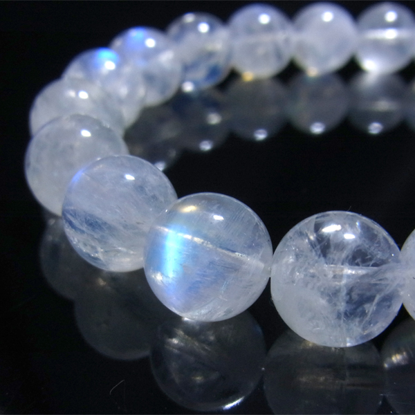 最高品質のブルームーンストーンのブレスレットです。透明度が高く、ブルーのシラーが一粒ごとにハッキリと見られます。身につけているだけで、心が落ち着くような素晴らしさです。【ムーンストーンの意味・効果】