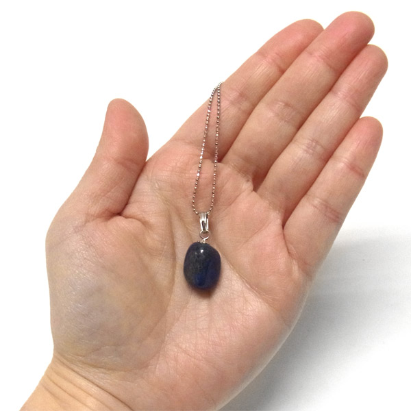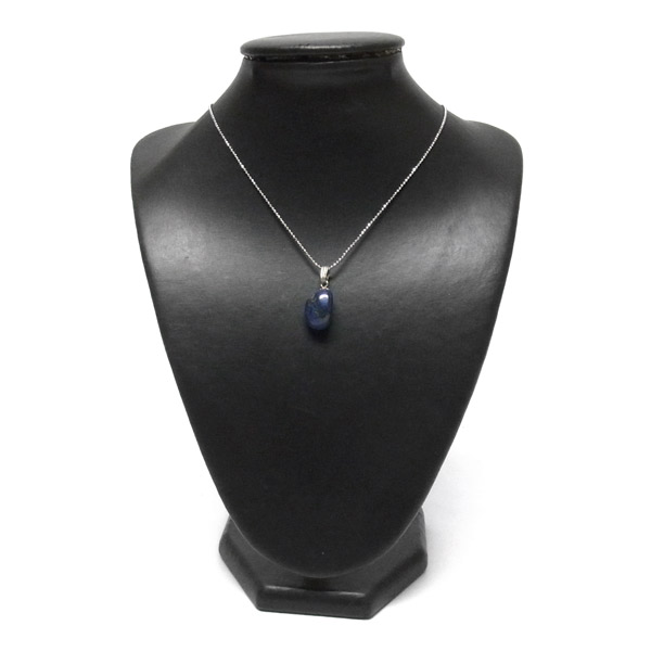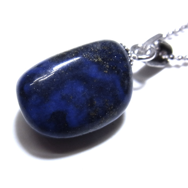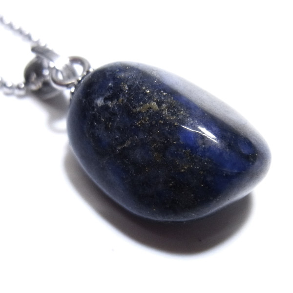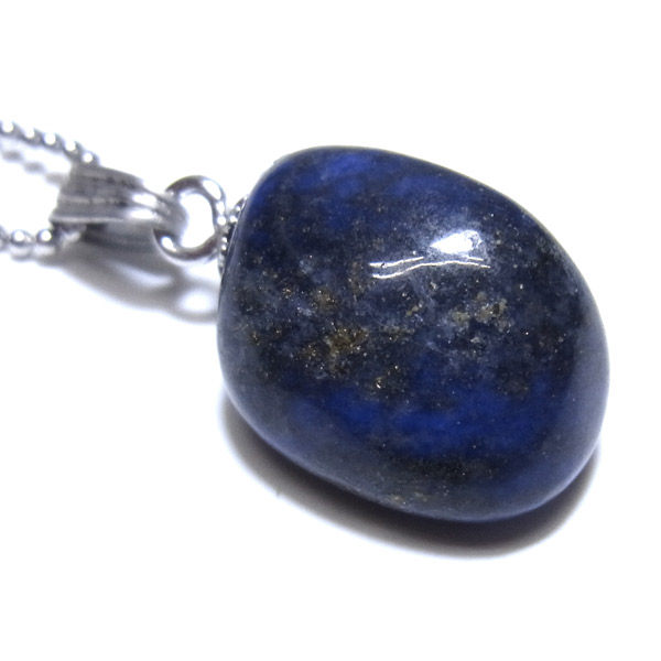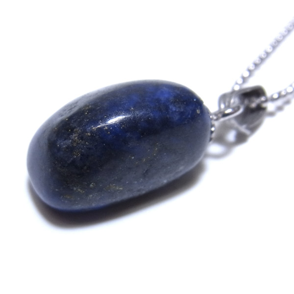 ラピスラズリのタンブル型ペンダントトップです。ラピスラズリは古くから幸運のお守り石として有名です。 こちらのラピスラズリは夜空のような群青色をしています。 色々な鉱物の成分が混じっていて表情があり、楽しめます。