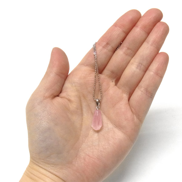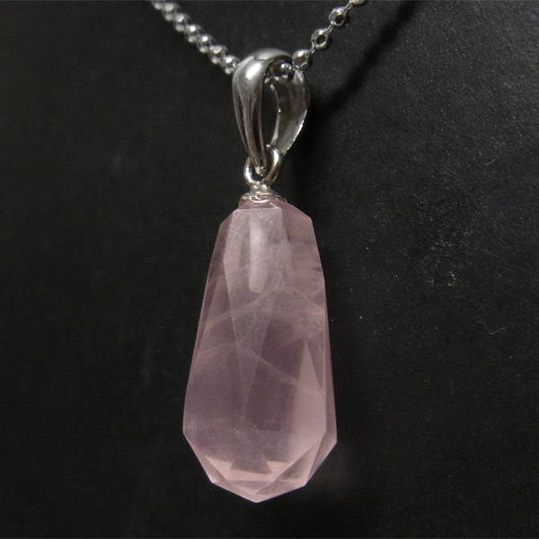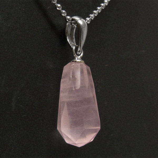 しずく型にカットが施された、ローズクォーツのペンダントトップです。