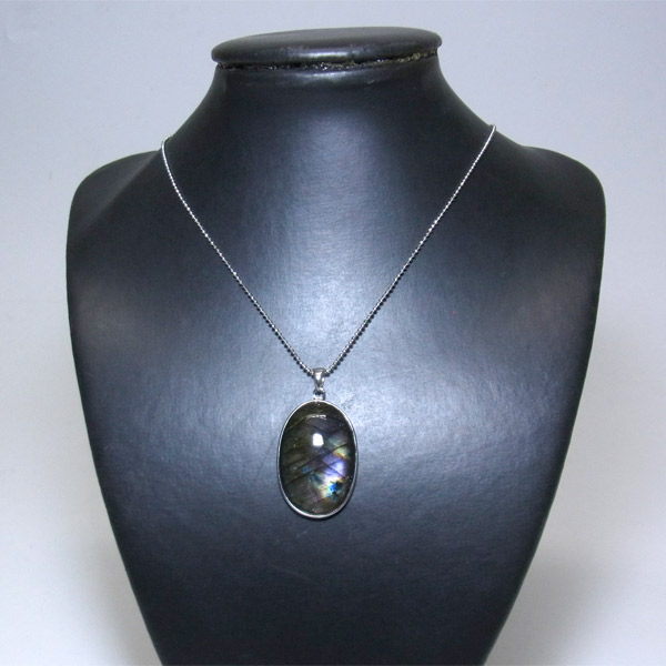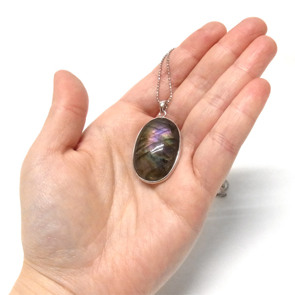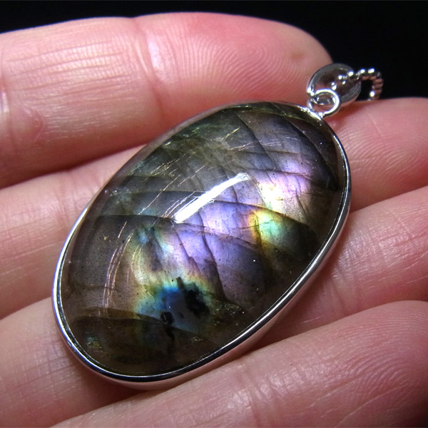 また、ペンダントトップの裏側も一面にラブラドレッセンスが見られます。