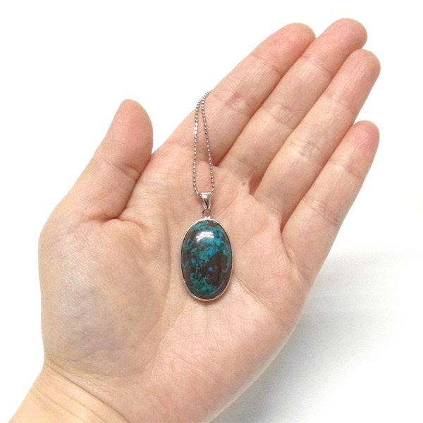 天然のブルーが美しいクリソコラのペンダントトップです。