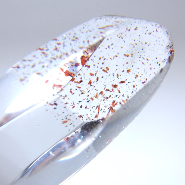 透明度が抜群で、その水晶に鮮やかな赤のレピドクロサイト(鱗鉄鉱)が内包されています。
