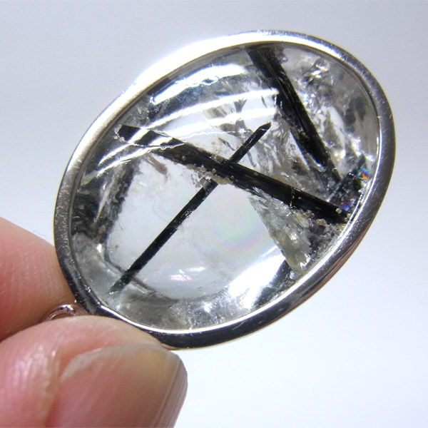 クォーツの透明度は抜群に高く、その中に大小さまざまな黒い針がが縦横無尽に走っています。