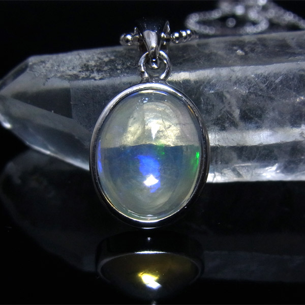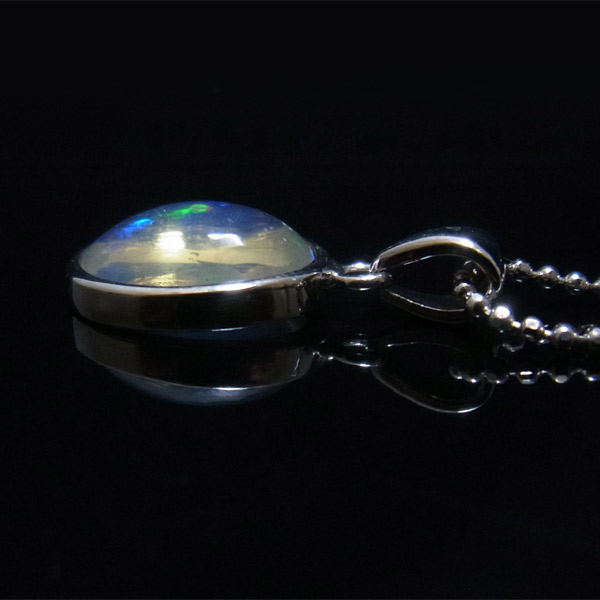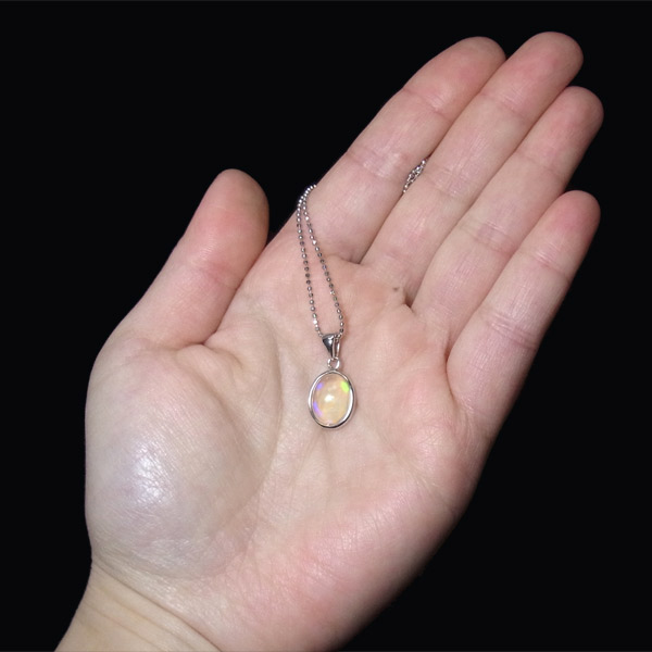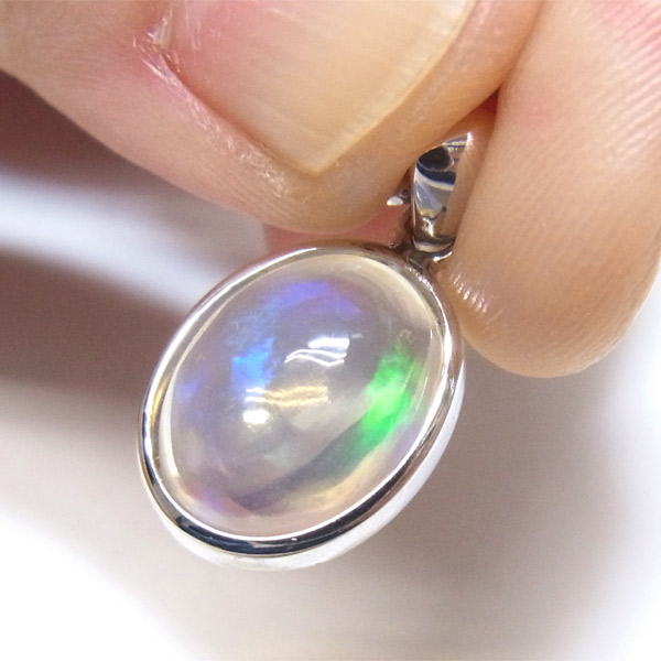 透明度が大変高いため、ペンダントトップの後ろにある物によって、遊色の見え方も変化します。