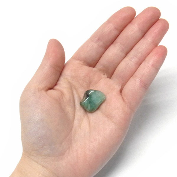 今回ご用意した商品は、色調が淡く曇りがあり、宝石ほどのグレードとまではいかないため、リーズナブルなお値段でご提供することができます。タンブルになるエメラルドの中でも厳選して比較的品質の良いものをご紹介しております。