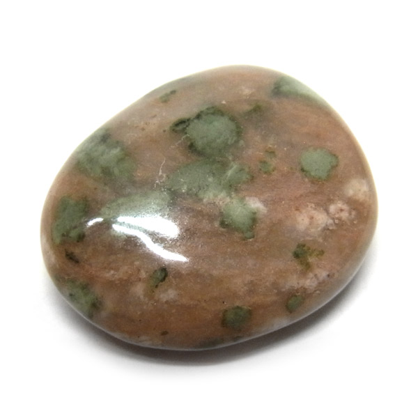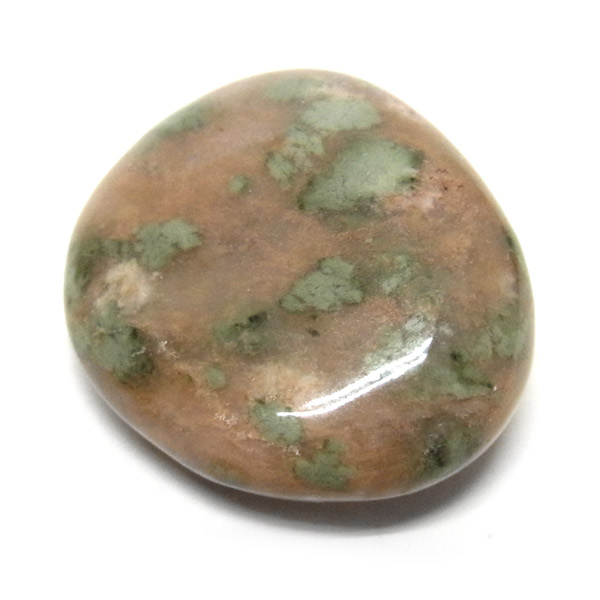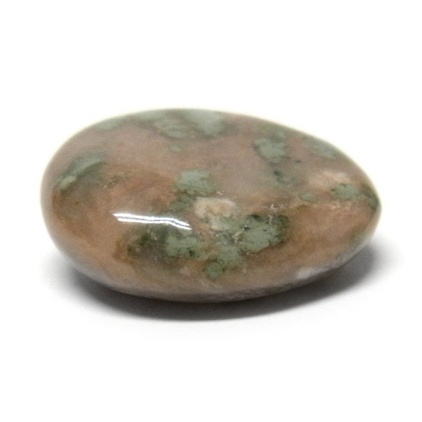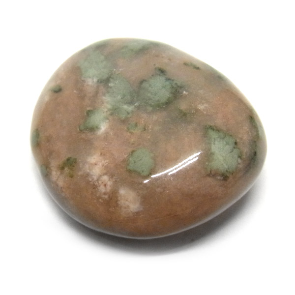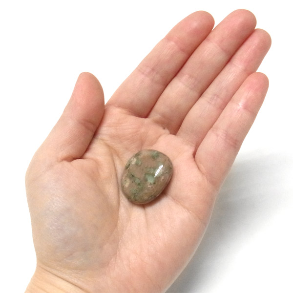 オーストラリア産のナンドライト、タンブルです。ナンドライトはオーストラリア・ニューサウスウェールズ州の小さな町ナンドルが産地である、希少であまり知られていない岩石です。ナンドライトという名前は、この産地に由来しています。ナンドライトの本質的な分類はエジリン閃長岩(エジリン・サイアナイト)にあたります。茶色やベージュ系のサイアナイト母岩の中に、深いグリーンのエジリンがドット状に散りばめられており、その独特な模様と色合いが非常に魅力的です。