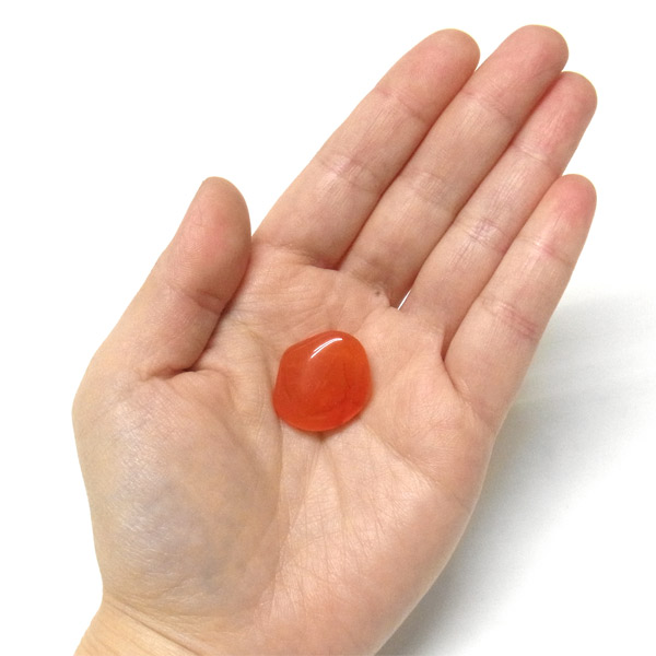 発色が良く、濃いオレンジが美しいカーネリアンのタンブルです。