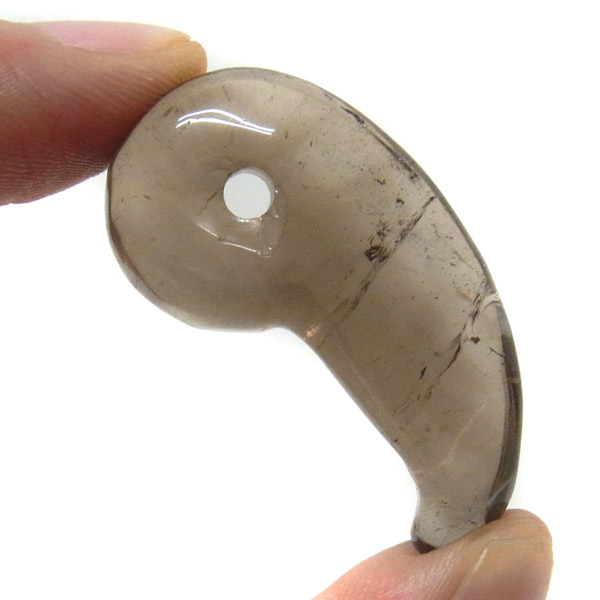 スモーキークォーツを使用して製作された勾玉です。 最大幅が3.5cmと大きな勾玉でペンダントやストラップなどにも使えます。魔除けや御守り、パワーアップアイテムに小袋などに入れて、肌身離さず持ち運べます。