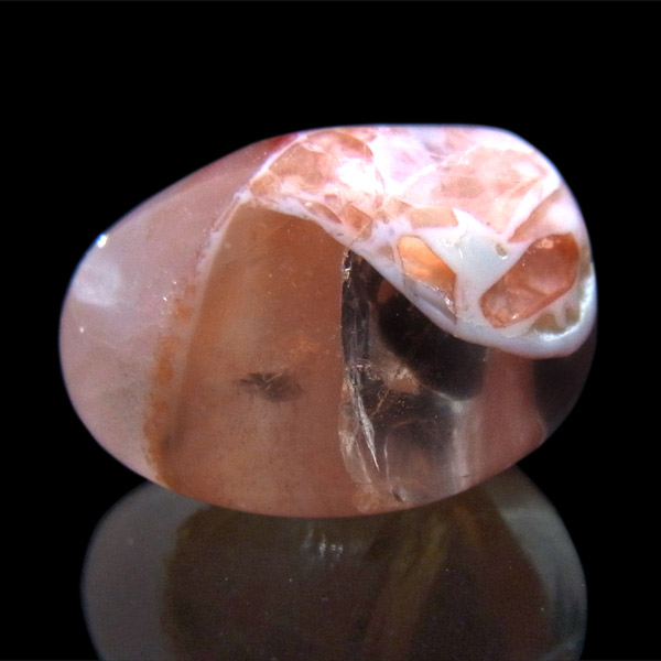 南インドに産するクォーツで、ヘマタイトによる赤い発色と、オパーライズド(オパール化)された部分がマーブル状に模様を描いています。