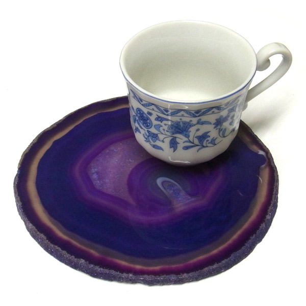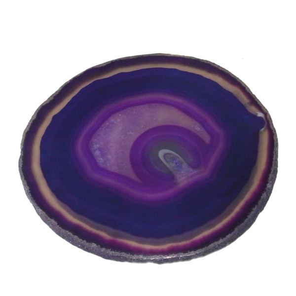 染色することにより、色の濃淡ができ、メノウの縞模様がより一層美しくなります。置物を置いたり、鉱物を置いたりのインテリアとしてや、グラスなどを置くコースターとしてもお楽しみ頂けます。