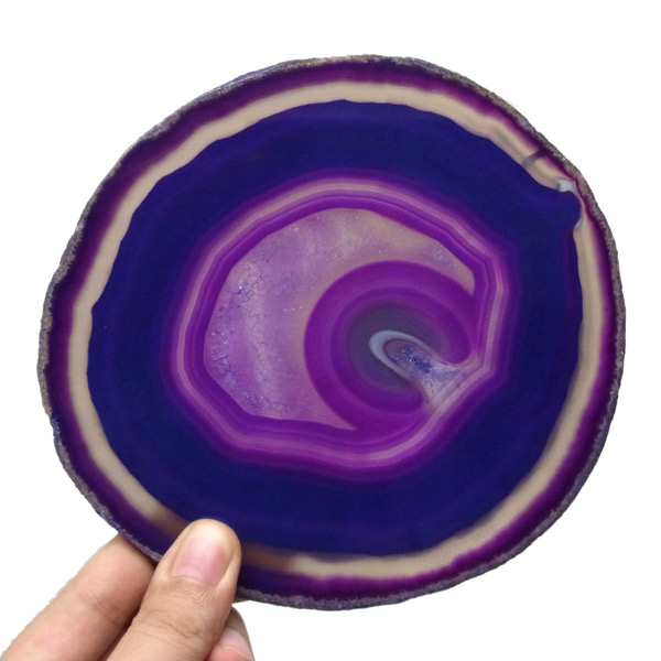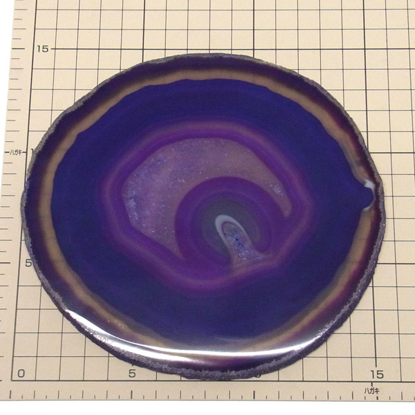 ブラジル産メノウを染色し、薄くスライスした色鮮やかなメノウスライスです。 カラーはパープル、大きさは特大サイズです。