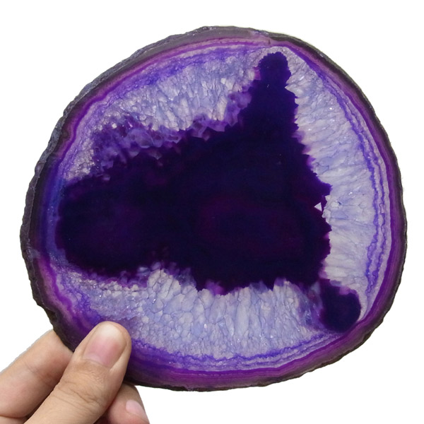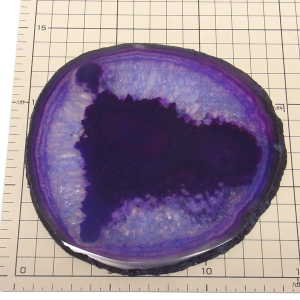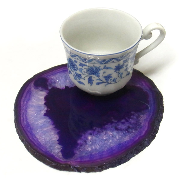 染色することにより、色の濃淡ができ、メノウの縞模様がより一層美しくなります。置物を置いたり、鉱物を置いたりのインテリアとしてや、グラスなどを置くコースターとしてもお楽しみ頂けます。