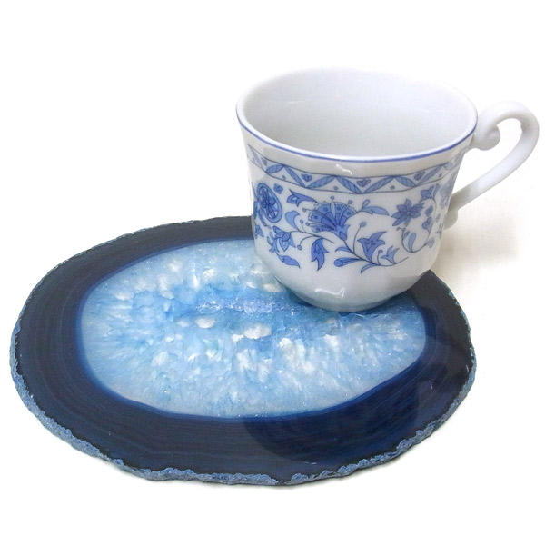 染色することにより、色の濃淡ができ、メノウの縞模様がより一層美しくなります。置物を置いたり、鉱物を置いたりのインテリアとしてや、グラスなどを置くコースターとしてもお楽しみ頂けます。