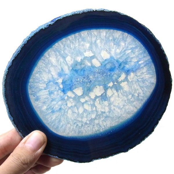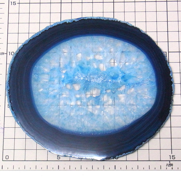 ブラジル産メノウを染色し、薄くスライスした色鮮やかなメノウスライスです。カラーはブルー、大きさは特大サイズです。
