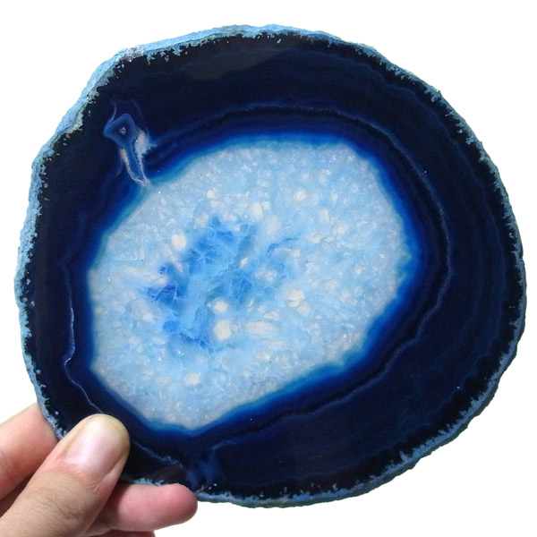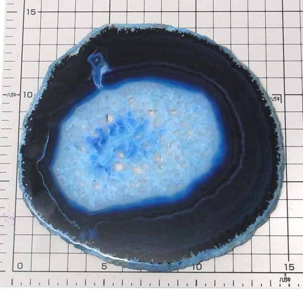 ブラジル産メノウを染色し、薄くスライスした色鮮やかなメノウスライスです。カラーはブルー、大きさは特大サイズです。