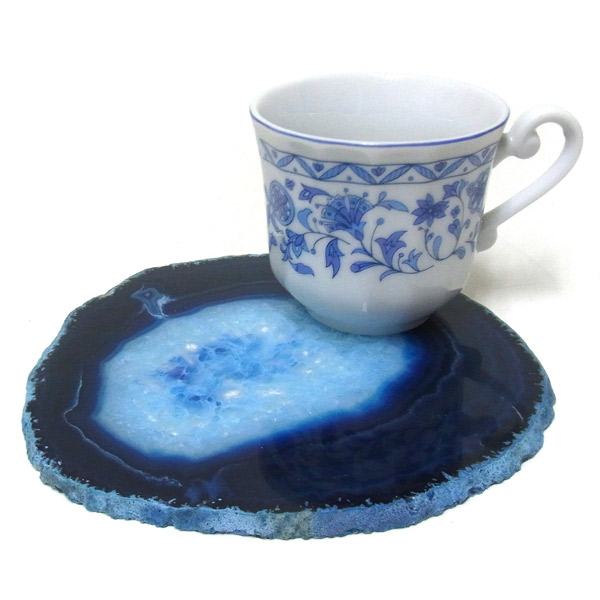 染色することにより、色の濃淡ができ、メノウの縞模様がより一層美しくなります。置物を置いたり、鉱物を置いたりのインテリアとしてや、グラスなどを置くコースターとしてもお楽しみ頂けます。