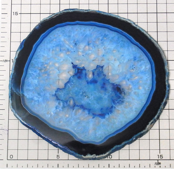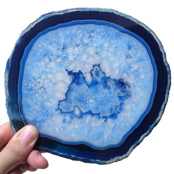 ブラジル産メノウを染色し、薄くスライスした色鮮やかなメノウスライスです。カラーはブルー、大きさは特大サイズです。