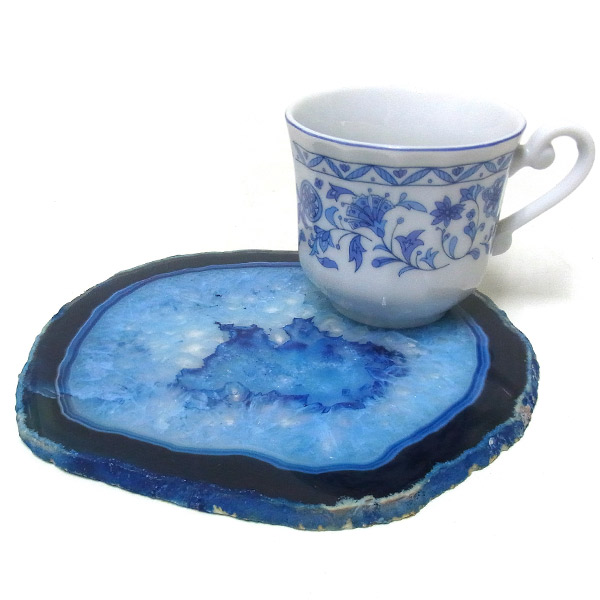 染色することにより、色の濃淡ができ、メノウの縞模様がより一層美しくなります。置物を置いたり、鉱物を置いたりのインテリアとしてや、グラスなどを置くコースターとしてもお楽しみ頂けます。