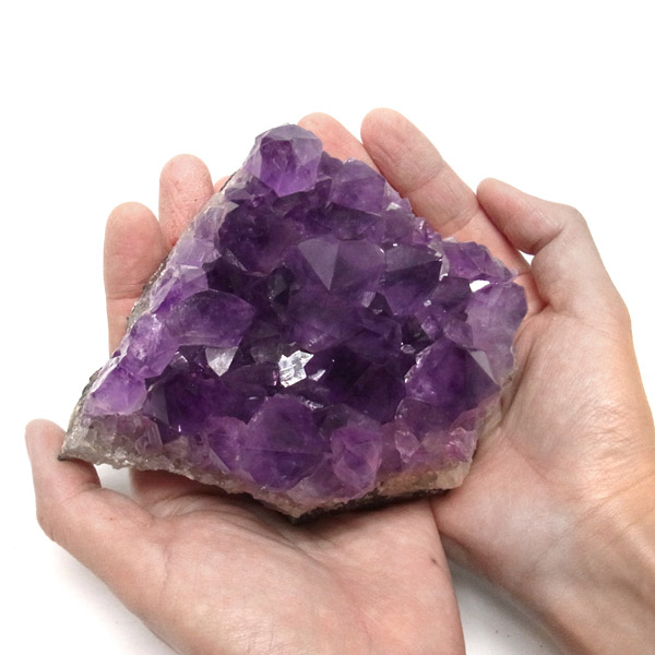 ブラジル産の大き目サイズのアメジストクラスターです。一つ一つの結晶が大きく成長したアメジストクラスターです。透明感があり、上質なアメジストの証である紫の色がしっかりと入った濃紫のクラスターです。
