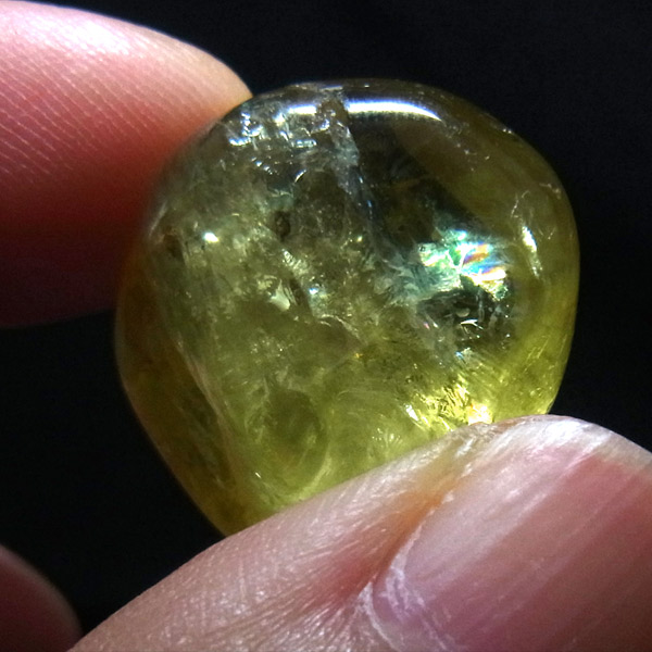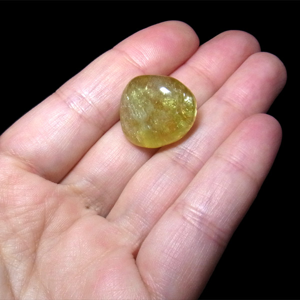 多く流通しているイエローアパタイトは、小指に乗るくらいの小さな原石ですが、このタンブルはその大きさをはるかに上回る大きさです。