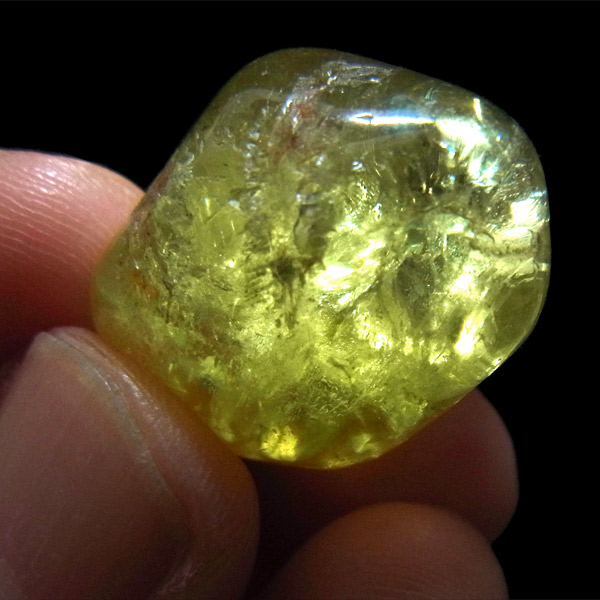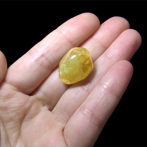 多く流通しているイエローアパタイトは、小指に乗るくらいの小さな原石ですが、このタンブルはその大きさをはるかに上回る大きさです。