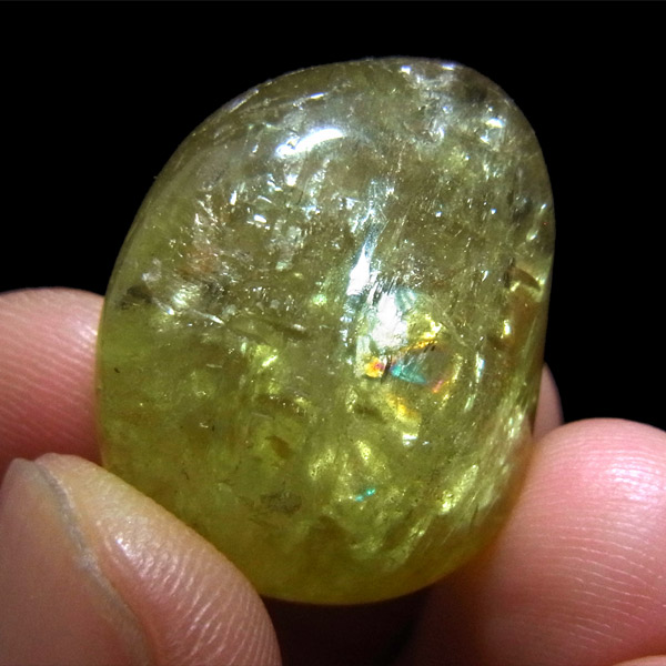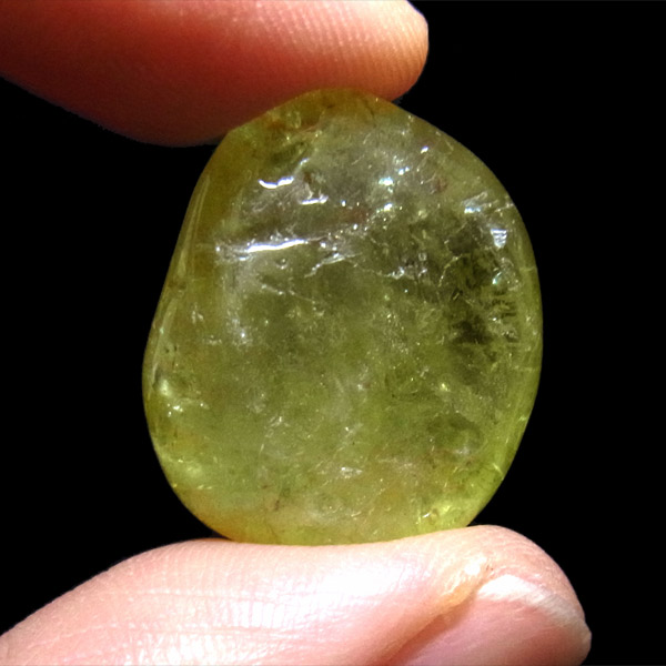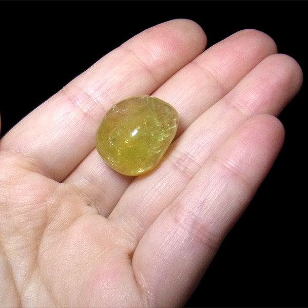 多く流通しているイエローアパタイトは、小指に乗るくらいの小さな原石ですが、このタンブルはその大きさをはるかに上回る大きさです。